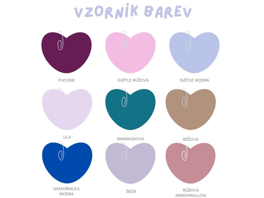 Tabulku velikostí a vzorník barev naleznete ve fotografiích.